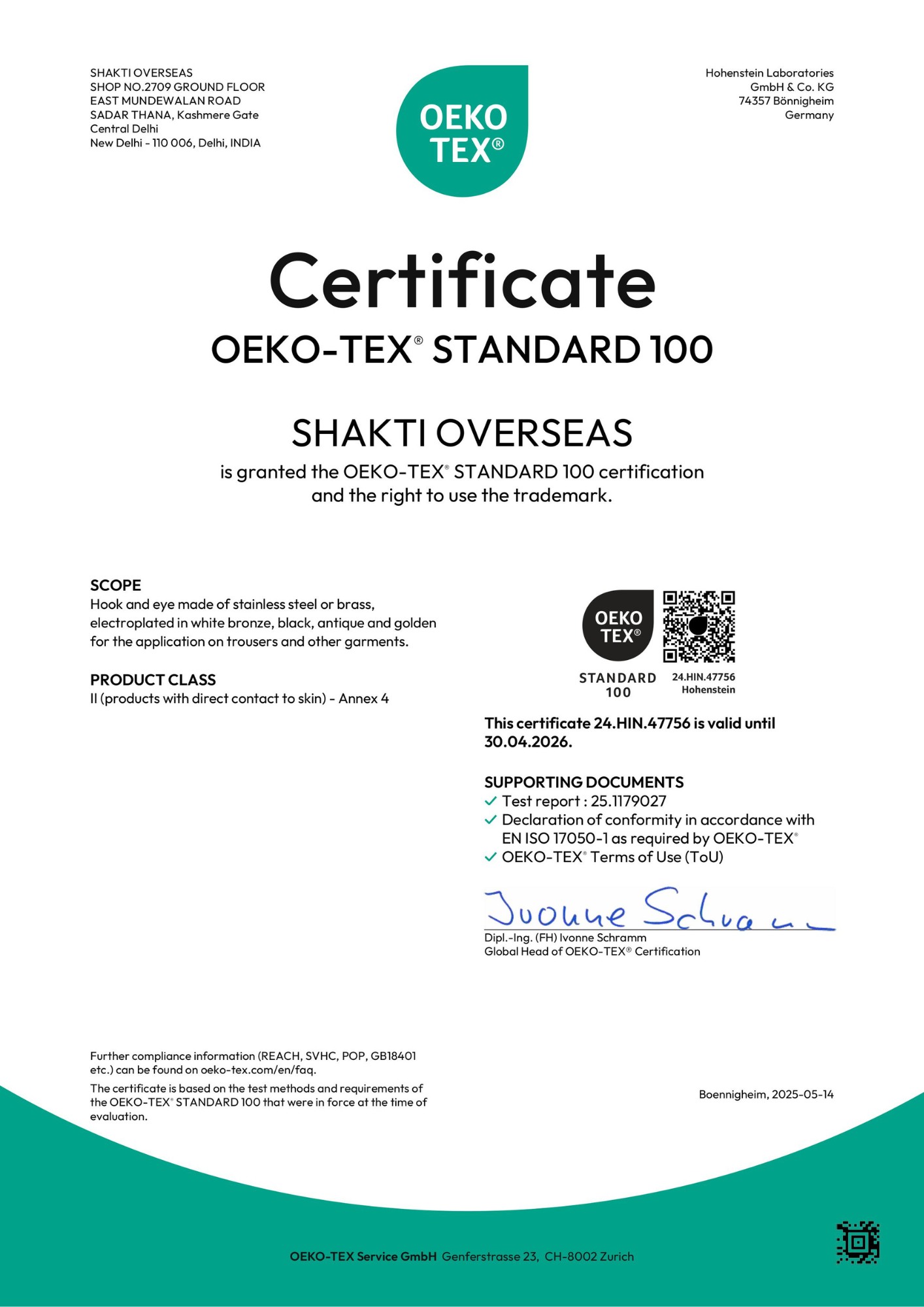 SHIV SHAKTI ENGINEERING WORKS is a trusted name in the manufacturing and export of premium garment accessories. Headquartered in New Delhi, we specialize in trouser hooks, pant hooks, hooks & bars, and hooks & eyes, delivering both quality and innovation to clients across India, Nepal, Bhutan, Sri Lanka, and Dubai.